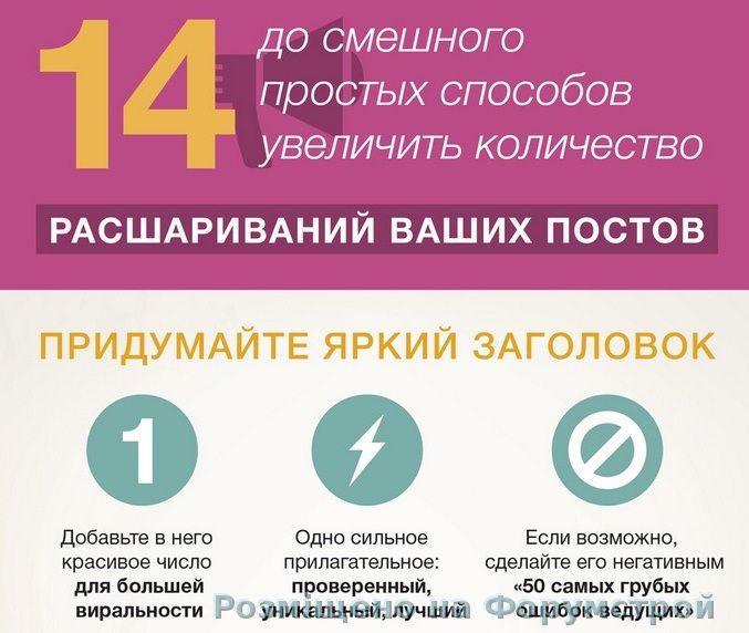 Написать качественный и полезный материал - это еще не все. Необходимо его сделать популярным, чтоб им охотно делились. Выкладываю инфографику с рунетовского портала TexTerra *14 простых советов о том, как сделать пост популярным в соцсетях и как увеличить показатель share для своего поста или статьи*. ...