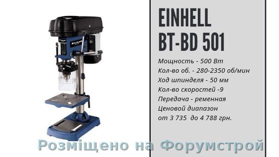 Einhell BT-BD 501 - мощность двигателя у данной модели небольшая. Но здесь она компенсируется количеством скоростей и для больших нагрузок минимальными оборотами.