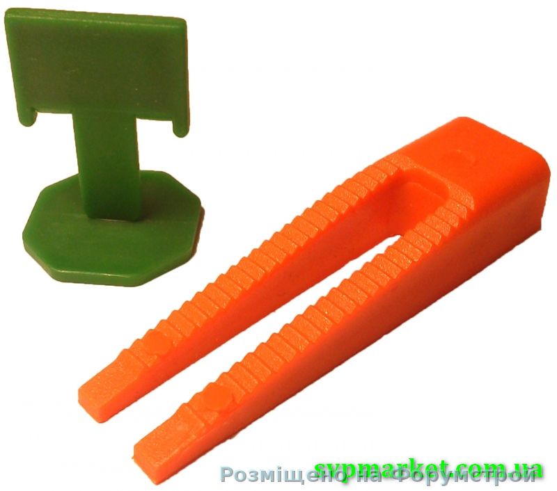 Это проставки для выравнивания плитки: зеленые штучки - вставляются между плитками, чтобы был одинаковый равномерный шов, а оранжевые - обычно используют для выравнивания по высоте.