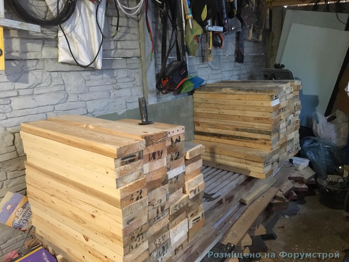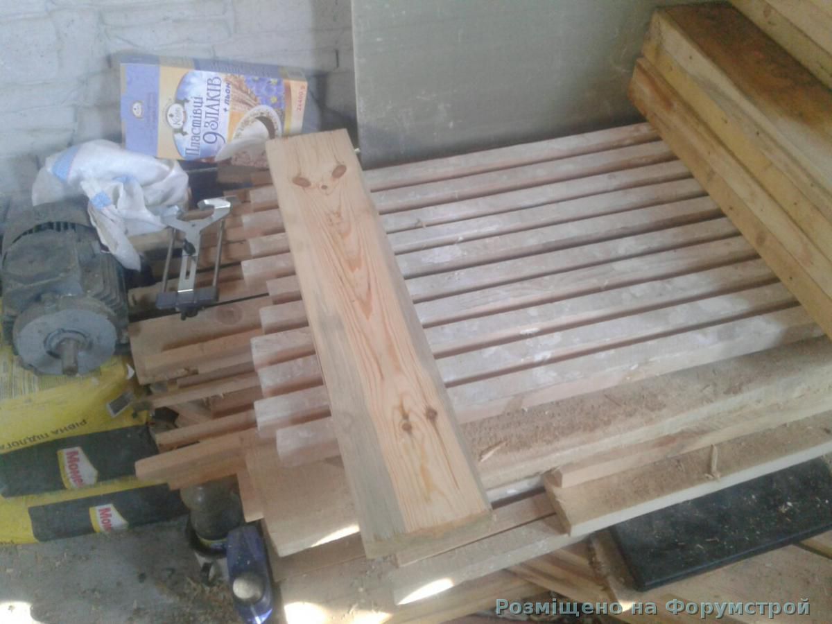 Расскажу немного о процессе изготовления наших ульев. Вчера начал готовить лес. Купили мы его в "Клондайке" еще в прошлом году, куб примерно, около 130 штук. Примерно по 10 грн/шт. В этих досках удобно, что гвозди были только по торцам и большая часть и вынута. Отбраковалось менее десятка досок. Начал строгать базу и 2 торца под склейку щитов. Доска сороковка, 40-42. Длина 70.